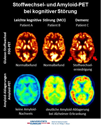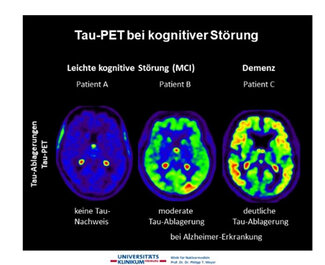 Cerebrospinal fluid diagnostics are also often routinely supplemented to rule out other causes like inflammation of the brain and to collect so-called biomarkers of Alzheimer's disease, namely biomarkers of amyloid and tau. However, this already shows that PET examinations are necessary in three scenarios in particular: