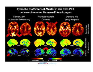 • When the initial suspicion is already that a patient suffers from a type of dementia other than Alzheimer's dementia. There are no established biomarkers for these diseases in cerebrospinal fluid, whereas FDG-PET can show disease-specific findings.