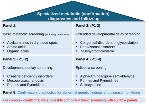 Inherited metabolic disorders are rare, monogenic diseases caused by mutations in genes of carbohydrate, fatty acid and amino acid metabolism or important co-factors. To date, more than 1880 diseases have been identified. The number is constantly growing.